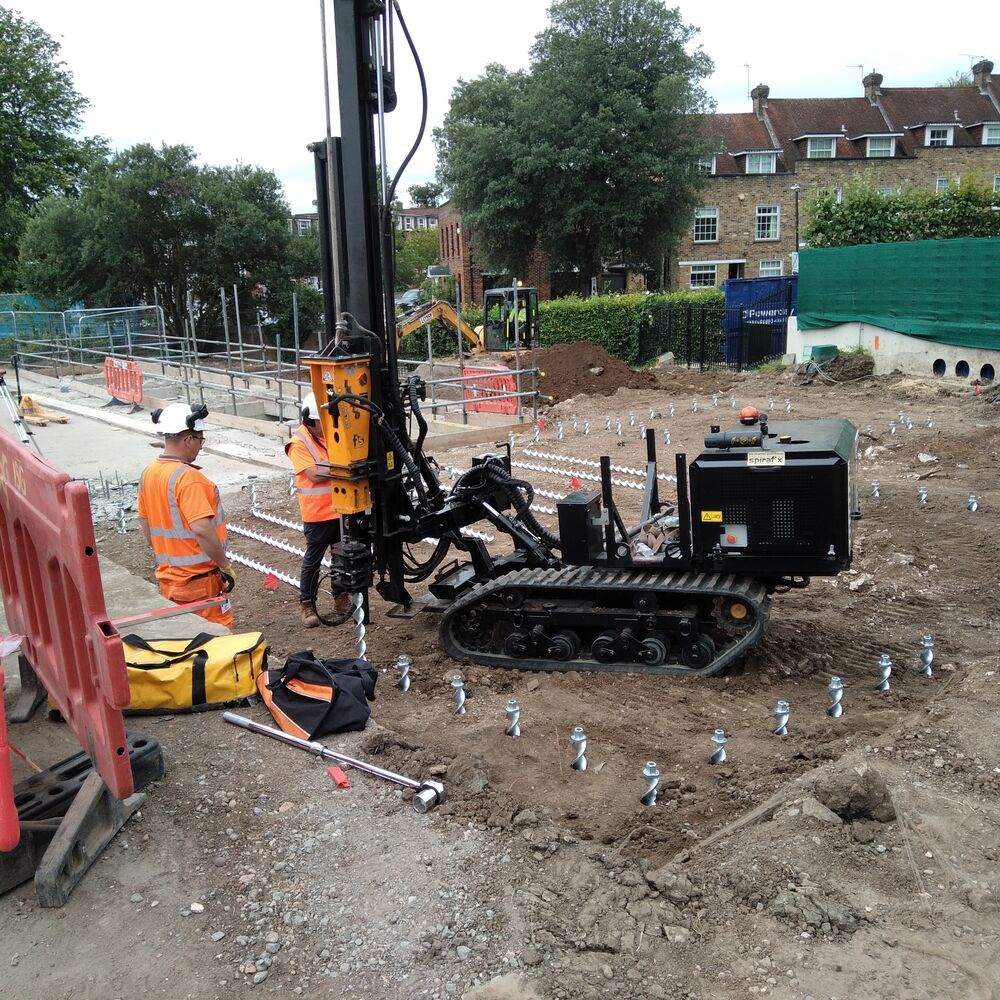 Les ancrages au sol Spirafix ont été utilisés pour une variété d'applications, mais l'une des méthodes les plus récentes et pionnières pour lesquelles nos clients ont commencé à utiliser les produits Spirafix est celle des pieux porteurs, qui sont encapsulés dans le béton pour stabiliser les fondations des radiers en béton. Les méthodes générales de travail consistent pour le client à spécifier les charges que les ancrages doivent atteindre pour supporter, les tests de charge sont terminés et le dimensionnement des ancrages est spécifié. Les ancrages sont ensuite installés conformément aux spécifications avant la mise en place de la plaque de retenue et des barres d'armature. Le coulage du béton termine ensuite le travail en liant l’ensemble de la fondation pour ne faire plus qu'un.