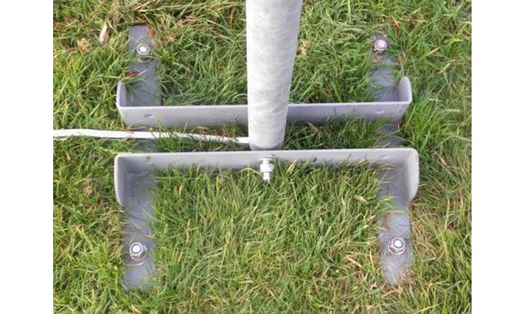Pour une application de plaque de base standard, l'ancrage est entièrement installé et les plaques de base sont simplement fixées en position à l'aide de vis standard. La tour est ensuite érigée et des haubans sont utilisés pour une stabilisation supplémentaire.