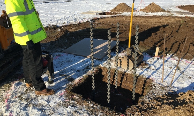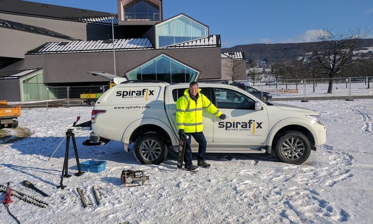 Conditions de sol très dures - gelées pour l'essentiel. Il devait s'agir d'une solution temporaire qui fonctionnerait bien dans des conditions très froides et qui serait entièrement amovible car l'installation artistique était conçue pour être de courte durée. Les ancrages hélicoïdaux Spirafix devaient être adaptés aux sols gelés.