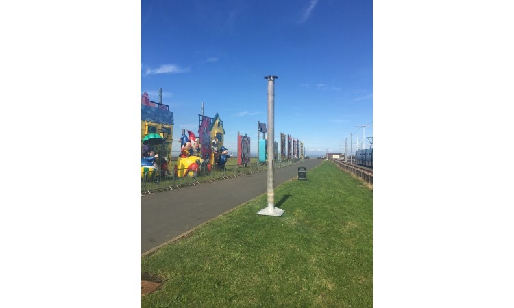 Nous avons conçu une plaque de base sur mesure à utiliser avec les poteaux de projecteur de Blackpool Illuminations. Les ancrages à tête filetée SF50-10-1260AC ont été spécifiés en fonction des charges nominales requises et des conditions de sol du site. Les ancrages ont été installés à l’aide d’un enfonce-pieux portatif à essence. Un modèle a été créé pour améliorer la précision de l'installation des ancrages. Une fois les ancrages en place, les plaques de base ont été fixées à l'aide de vis de réglage et de rondelles.
